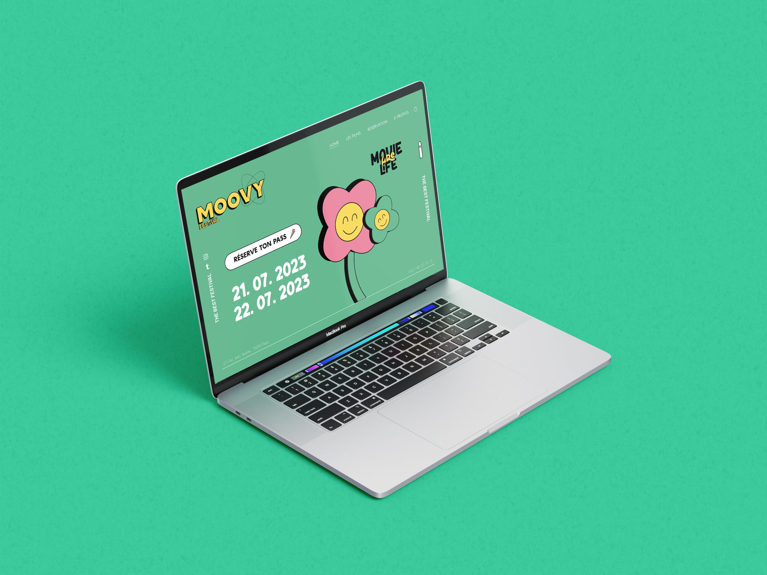 Moovy, le festival de cinéma en plein air, adopte un style rétro-vintage, plongeant les participants dans une ambiance des années 60 à 90. Les couleurs pastel apportent confort, nostalgie et modernité.